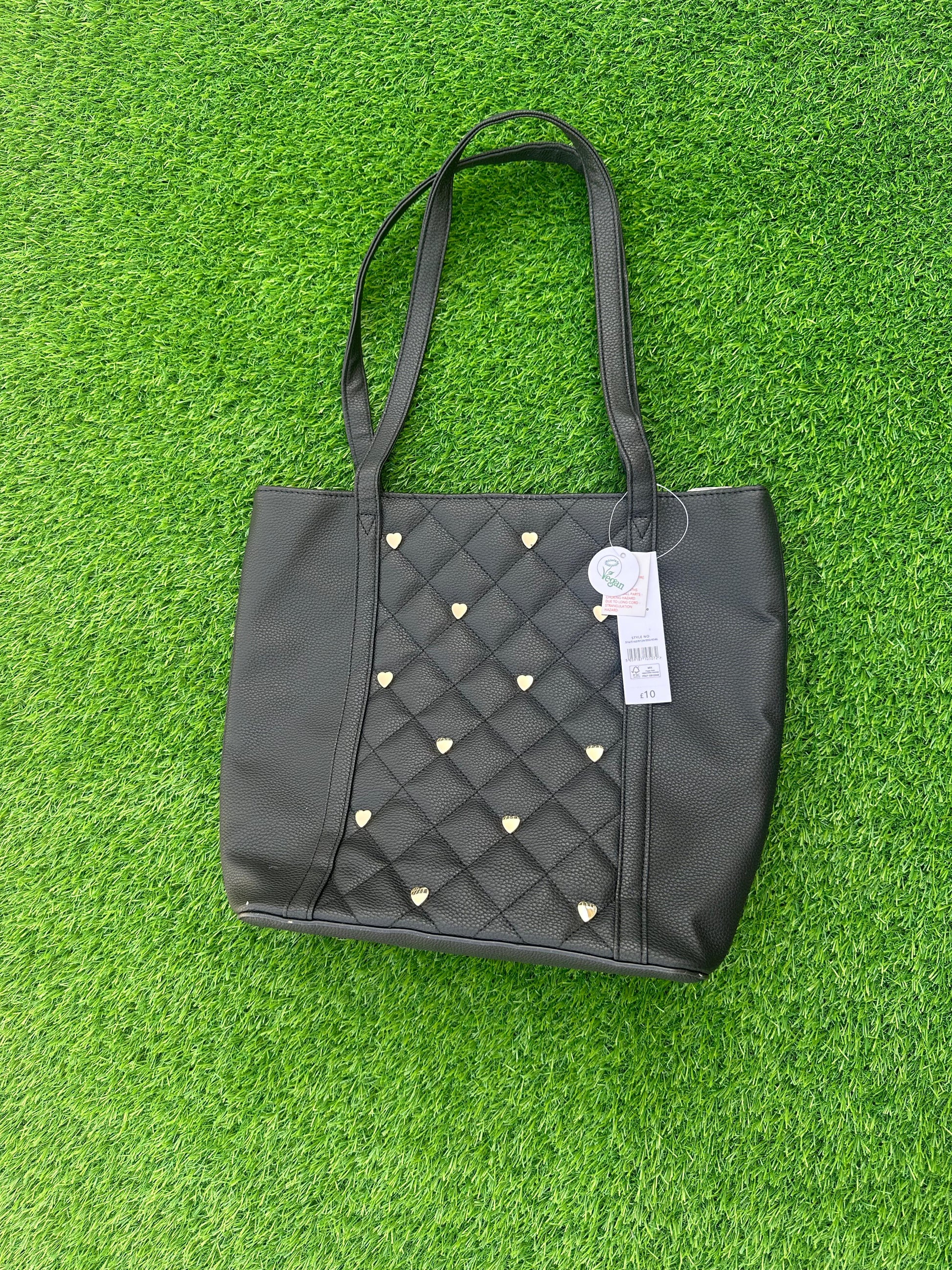 GEORGE BLACK QUILATED TOTE BAG WITH GOLDEN HEART STUDS