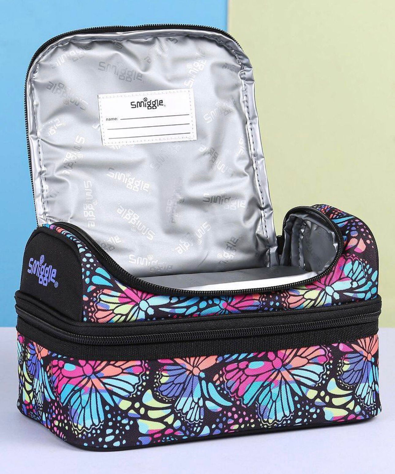 SMIGGLE BUTTERFLY BLACK DOUBLE DECKER LUNCH BAG